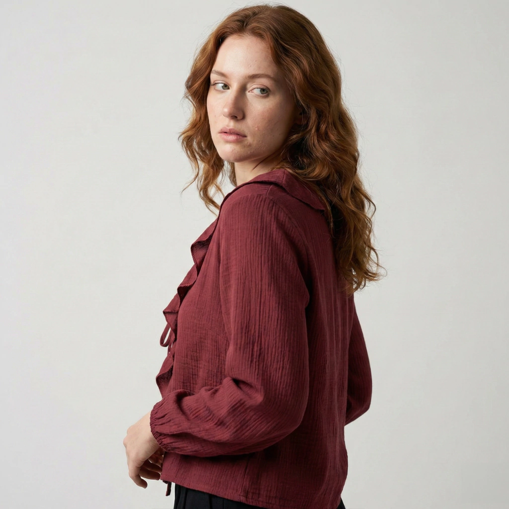 Blusa seda bambula con volados y lazos