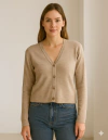 Diseño de punto liso con corte a la cintura, cuello en V y cierre frontal con botones al tono. Mangas largas y terminaciones finas en puños y cintura para un calce prolijo. Ideal para usar solo o como capa liviana sobre remeras o blusas.