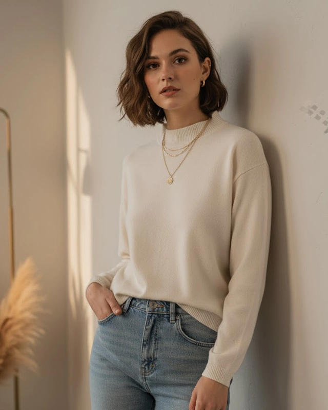Minimalista, suave y con un corte moderno. Este sweater de hilo de bremer tiene un diseño limpio con cuello media polera y largo al hueso de la cadera, ideal para looks prolijos o como base para superposiciones.